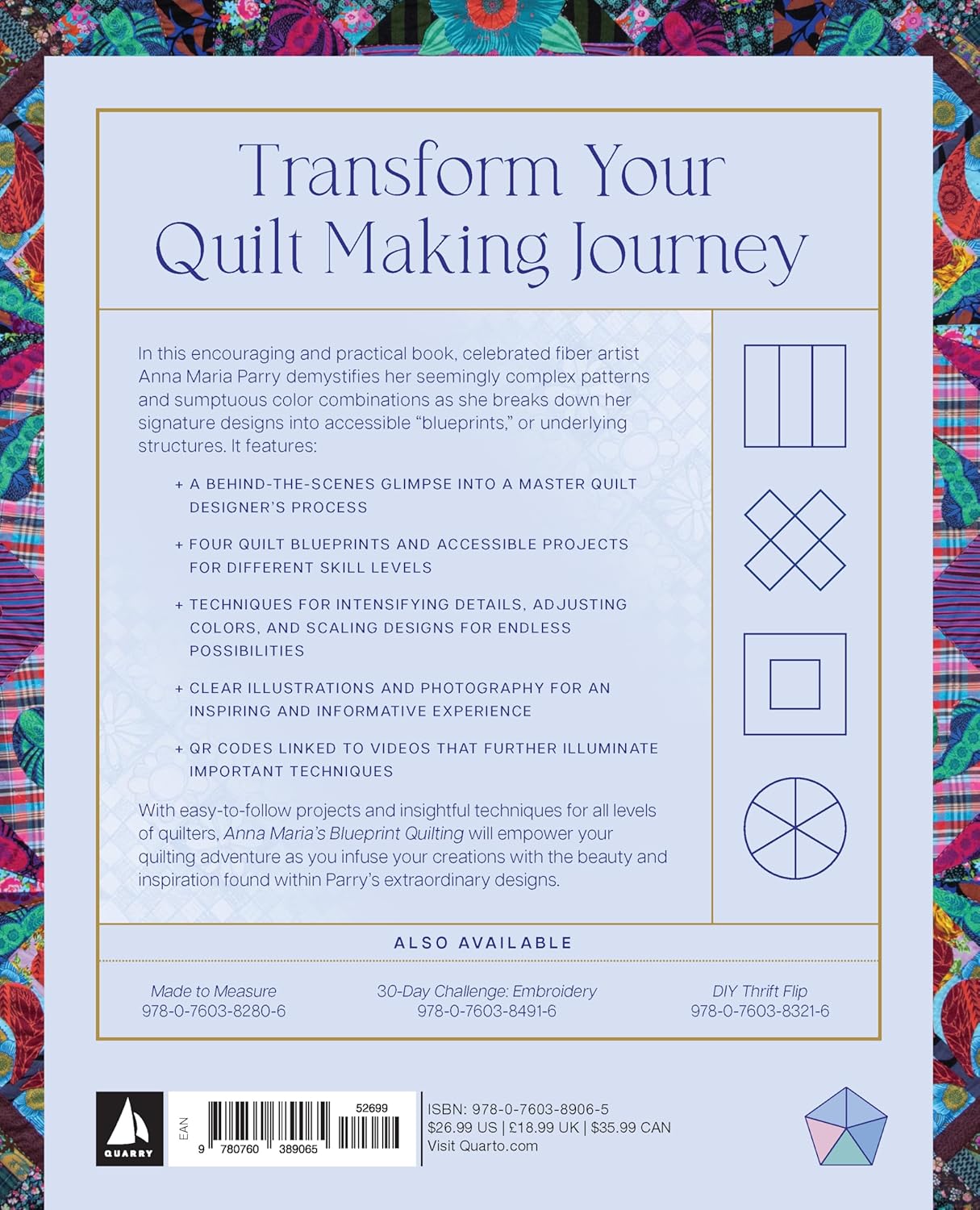 With easy-to-follow projects and insightful techniques for all levels of quilters, Anna Maria’s Blueprint Quilting will empower your quilting journey as you infuse your creations with the beauty and inspiration found within Anna Marias’s extraordinary designs.