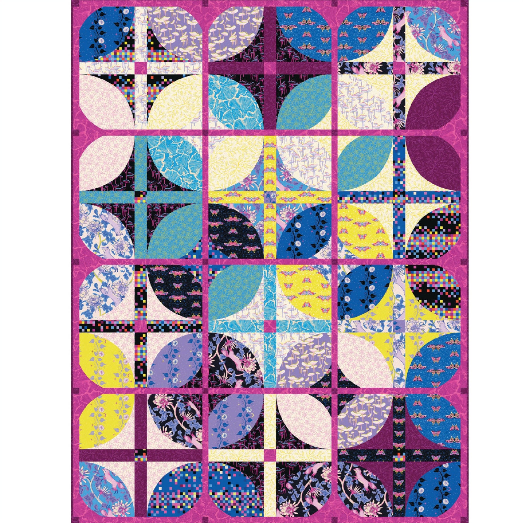 The Courtyard Quilt by Everyday Stitches is a modern, curvy twist on cathedral window and petal-style blocks. Designed for confident beginners and curved piecing enthusiasts alike, this layout shines with bold color contrast and rhythmic repetition.
