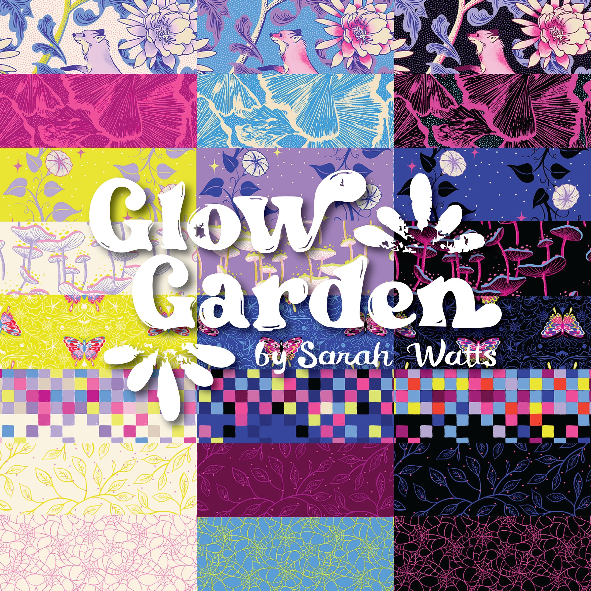 This kit features Glow Garden by Sarah Watts for Ruby Star Society—a richly saturated collection full of dreamy botanicals, playful textures, and radiant color. With purples, blues, citrus, and pops of neon, this collection breathes glowing life into the gentle curves and layered petals of the Courtyard layout.