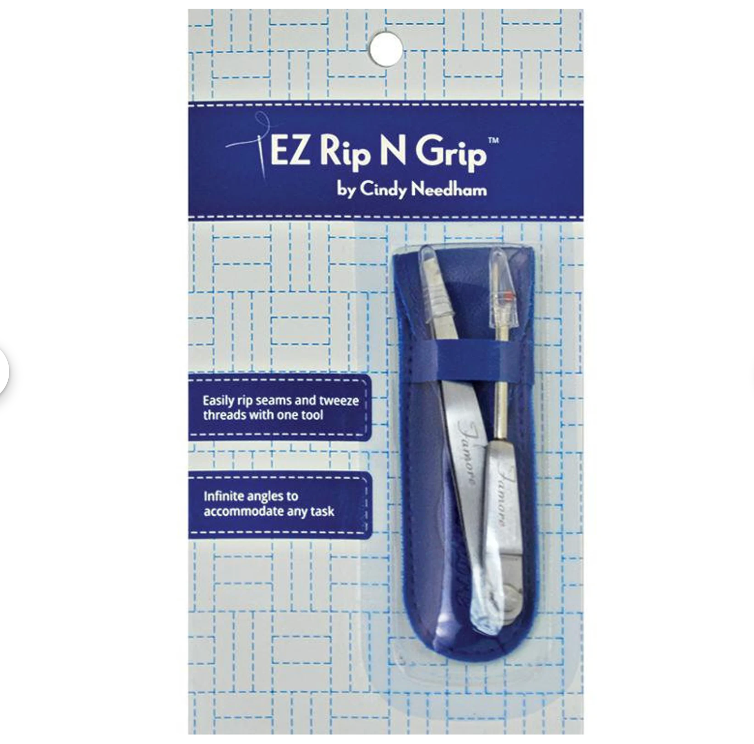 Famore Cutlery and Cindy Needham have teamed up to bring you the "EZ Rip N Tweeze", a flat slanted tweezer and a traditional seam ripper all in one. Easily undo seams and tweeze threads with one tool. Infinite angles to accommodate any task. Tools come with a leather pouch for safe storage.