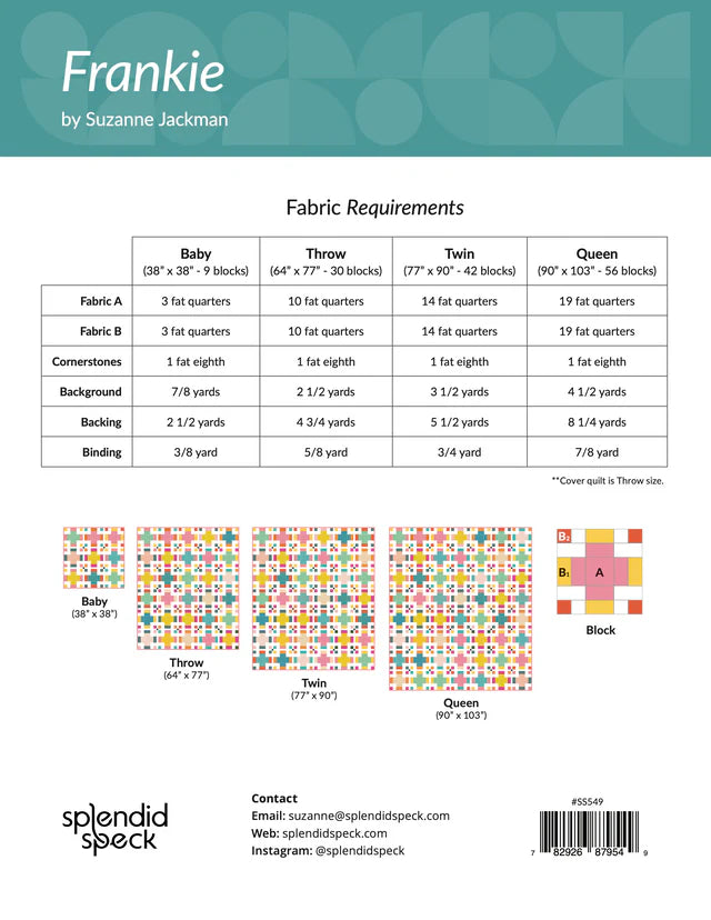 Frankie - Quilt Pattern - Fat Quarter Pattern by Suzanne Jackman of Splendid Speck
