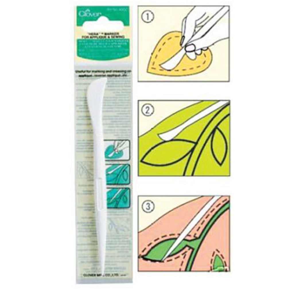 For marking and creasing in patchwork, quilting and sewing applications. With its small tip,the Hera Marker is easy to handle and suited for marking and creasing the seam allowance in such works as small appliqué and reverse appliqué.