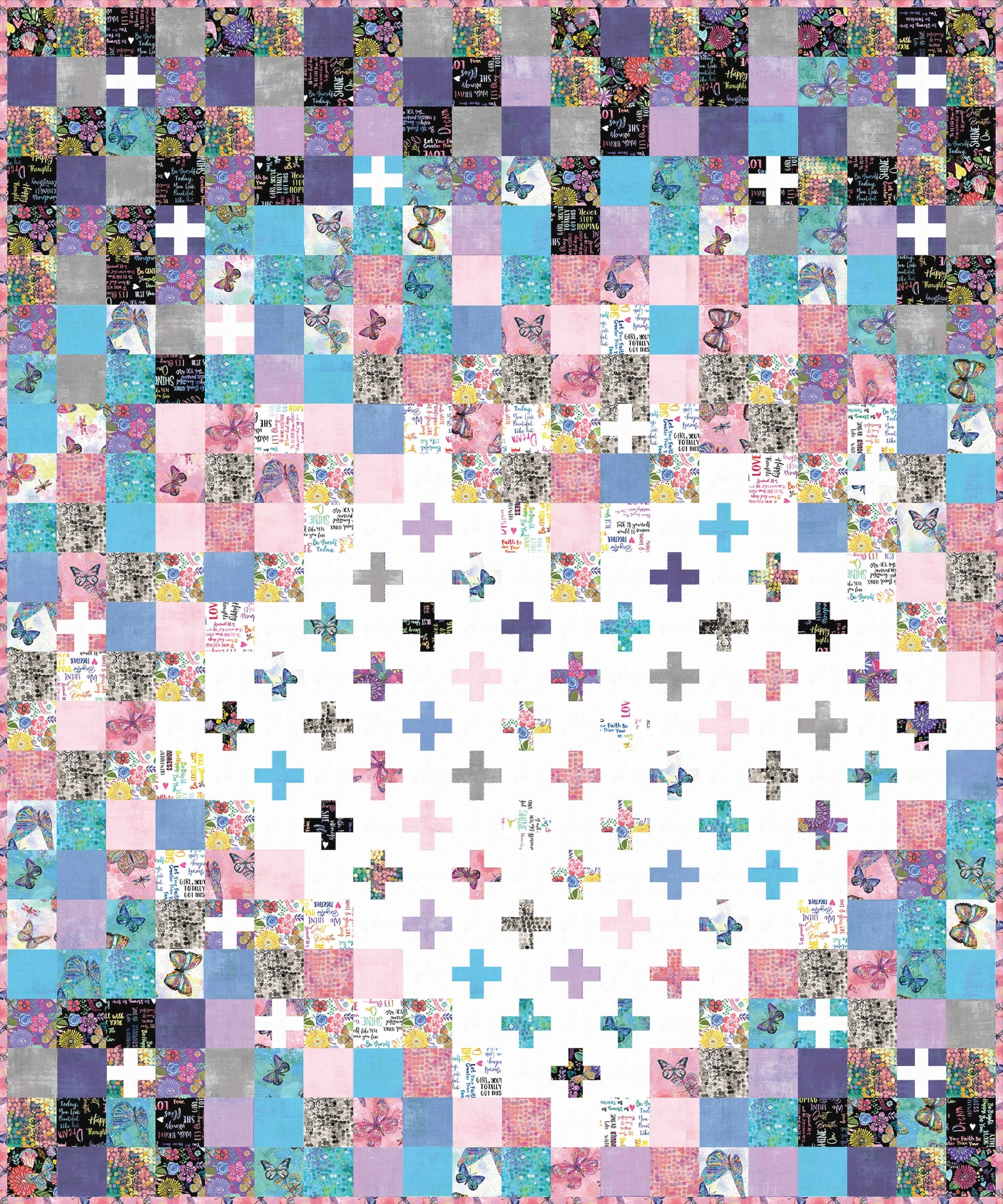If you could bottle joy and stitch it into a quilt, Just Add Love would be it. Designed by Cotton Street Commons, this large lap-sized quilt is an explosion of color and positivity—layering radiant crosses over a painterly cascade of patchwork squares. The layout gives a modern twist to a scrappy feel, offering loads of visual movement while keeping the construction approachable.
