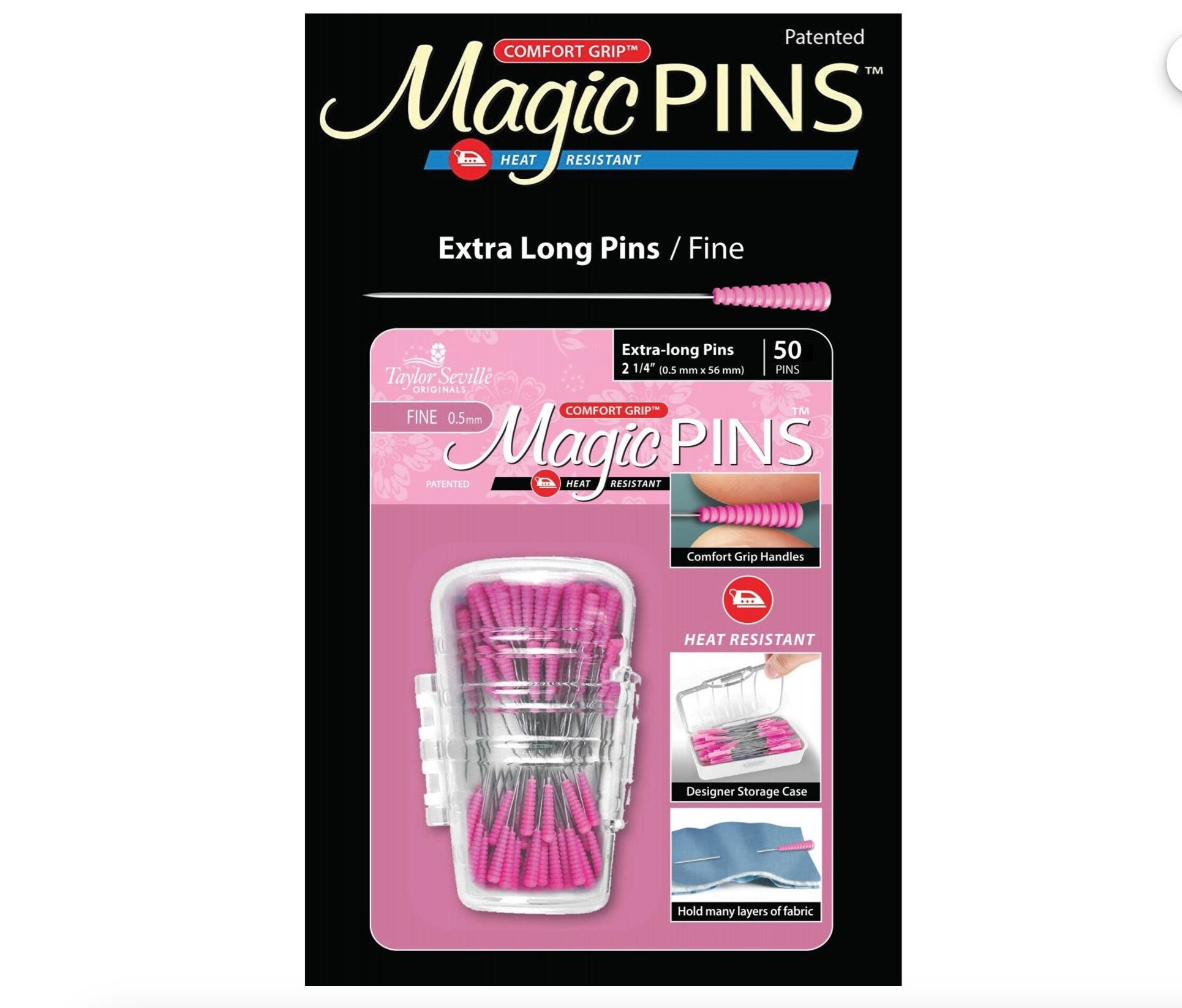 Taylor Seville Magic Quilting Pins sind hitzebeständig und verfügen über die einzigartigen Comfort Grip (TM)-Griffe mit Rillen. Die Griffe sind handfreundlich beim Feststecken und die Hitzebeständigkeit ermöglicht das Bügeln direkt über die Nadeln, ohne sie herauszunehmen. 50 Stück sind in einem attraktiven Designer-Aufbewahrungskoffer enthalten.