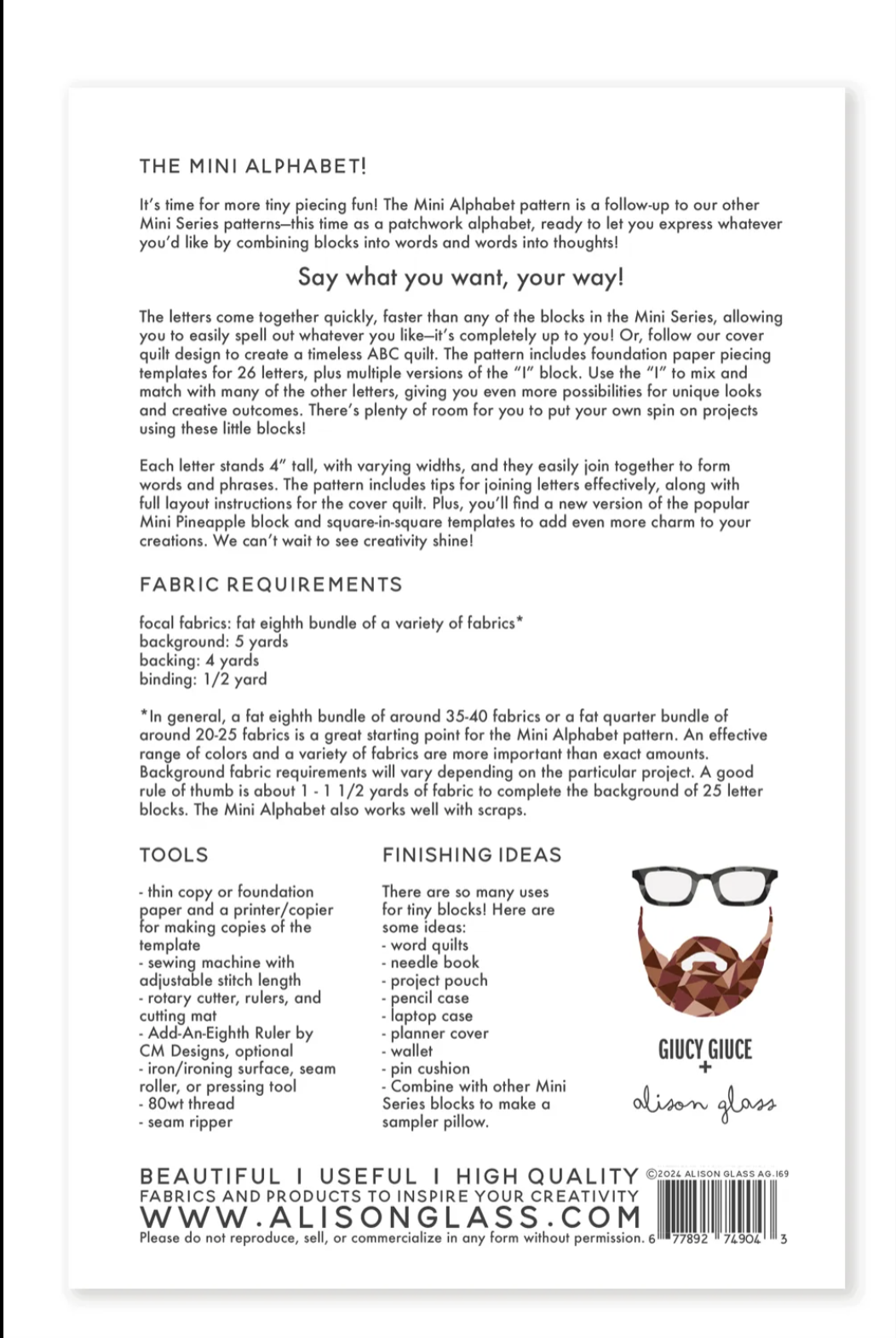 It’s time for more tiny piecing fun with the Mini Alphabet Quilt Pattern by Alison Glass & Giucy Giuce! This creative follow-up to the Mini Series patterns features a patchwork alphabet that invites you to spell out anything you’d like—turning tiny blocks into words, and words into expressive, personal quilts.