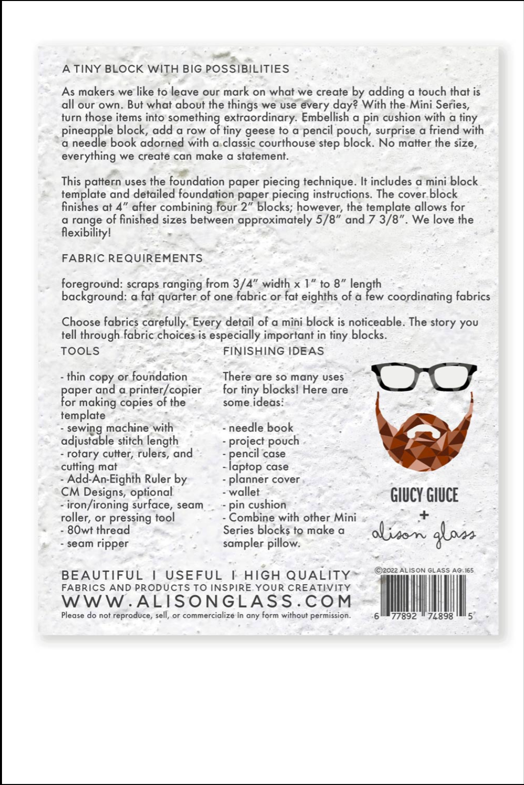 As makers, we like to leave our mark on what we create by adding a touch that’s all our own. But what about the things we use every day? With the Mini Series, you can turn ordinary items into something extraordinary. Embellish a pin cushion with a tiny pineapple block, add a row of tiny flying geese to a pencil pouch, or surprise a friend with a needle book adorned with a classic courthouse steps block. No matter the size, everything we create can make a statement.