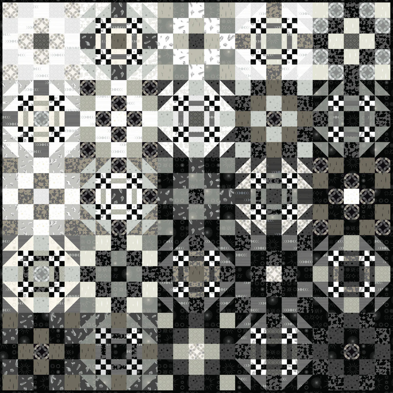 Elevate your quilting game with the Myriad Quilt Kit, featuring the Still fabric collection by Libs Elliott for Andover Fabrics. This stunning quilt design plays with light and dark movement, creating a bold, modern look with high-impact contrast. Using twenty-four shades of gray, the Myriad Quilt is a dynamic two-block quilt that showcases the striking textures and contemporary aesthetic of Libs Elliott’s signature style.