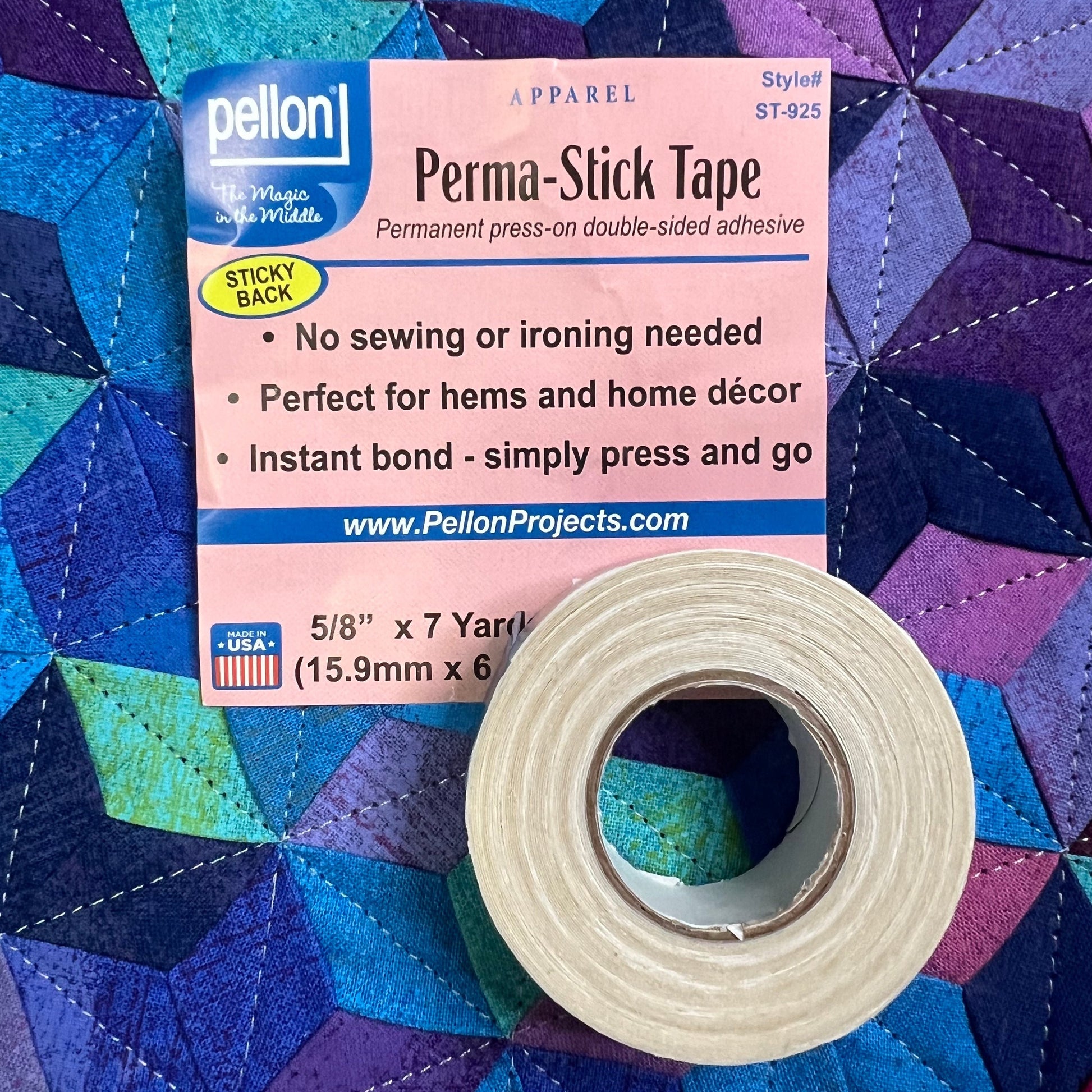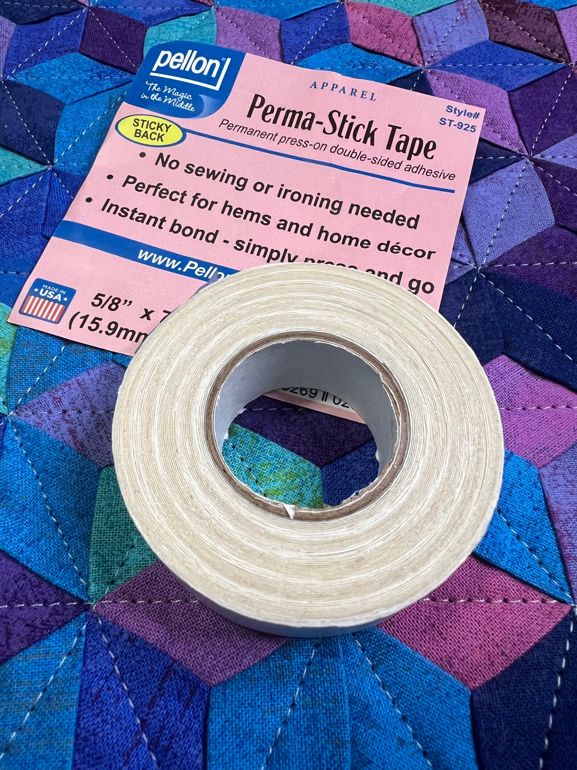 A permanent pressure sensitive two-sided adhesive tape. Simple iron to make bond permanent. Acid free, 5/8" x 21 feet.