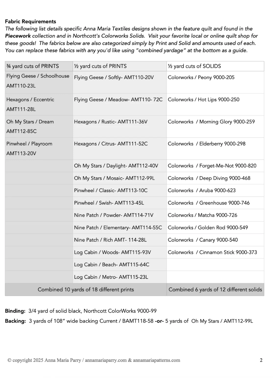 - Designed to highlight fabrics from Anna Maria Textiles, but works beautifully with your own curated mix of prints and solids