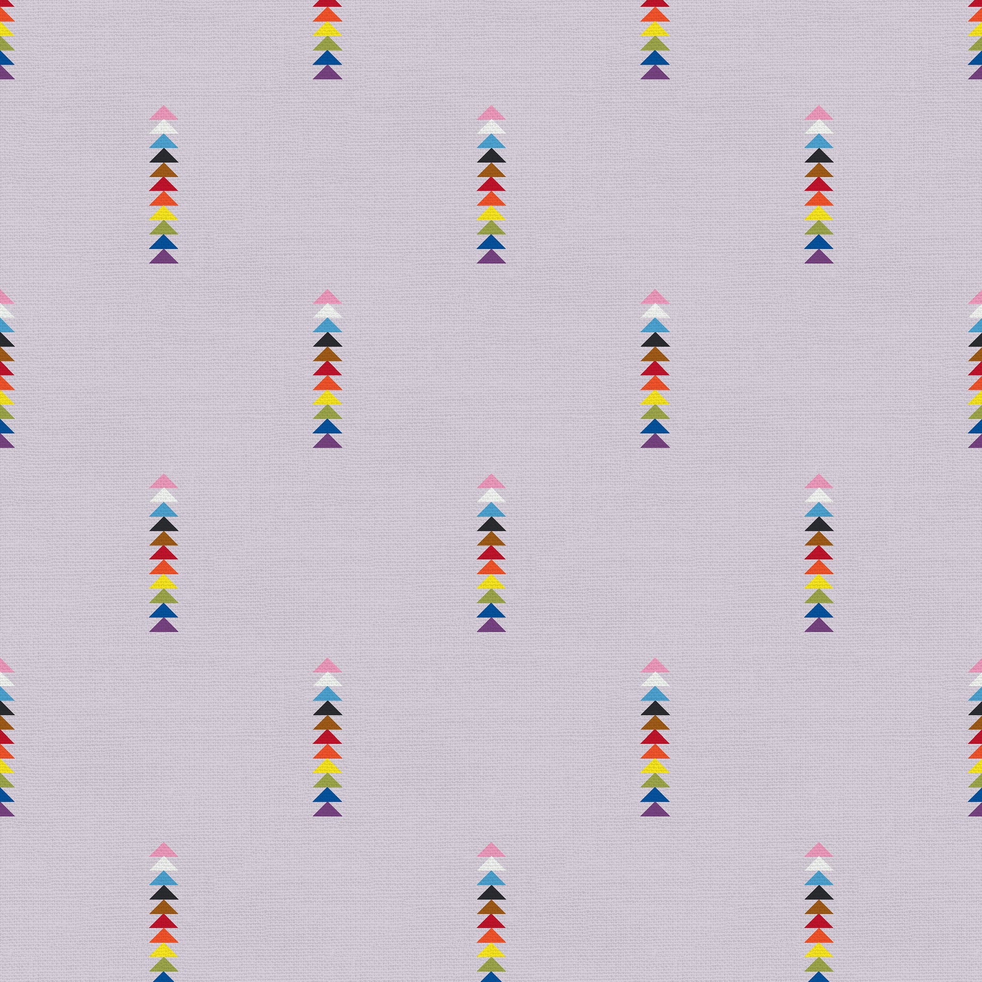 Love is Love LGBTQIA+ Pride-Stoffe, entworfen von Mathew Boudreaux von Mx Domestic (FKA Mister Domestic. Fliegende Gänse in den 11 Farben der Progress Pride-Flagge auf lavendelfarbenem Hintergrund.