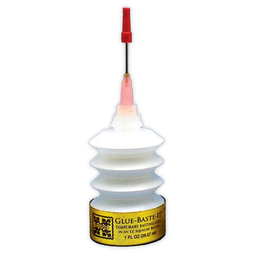 100% water-soluble glue dries in minutes holds firmly until moistened or washed and does not feel stiff when dry. A syringe applicator allows controlled placement of droplets of glue. Contains no dyes waxes or harmful chemicals and is pH neutral. Use for temporary basting on appliques hems bindings and anywhere you would normally use pins.