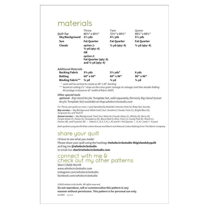 Whole Circle Studio - Big Island Sky Quilt Pattern