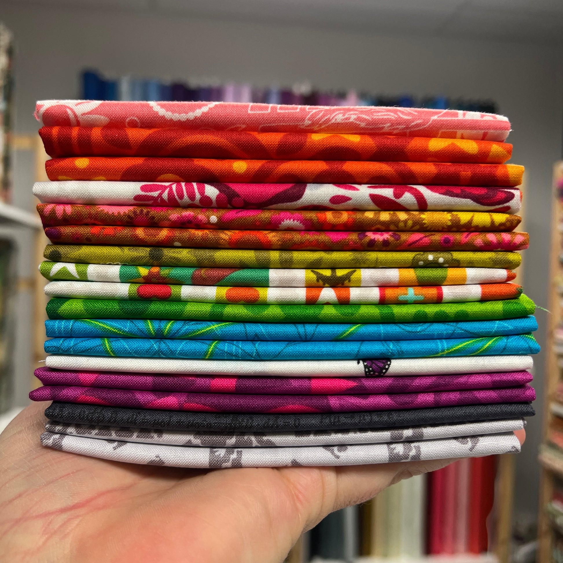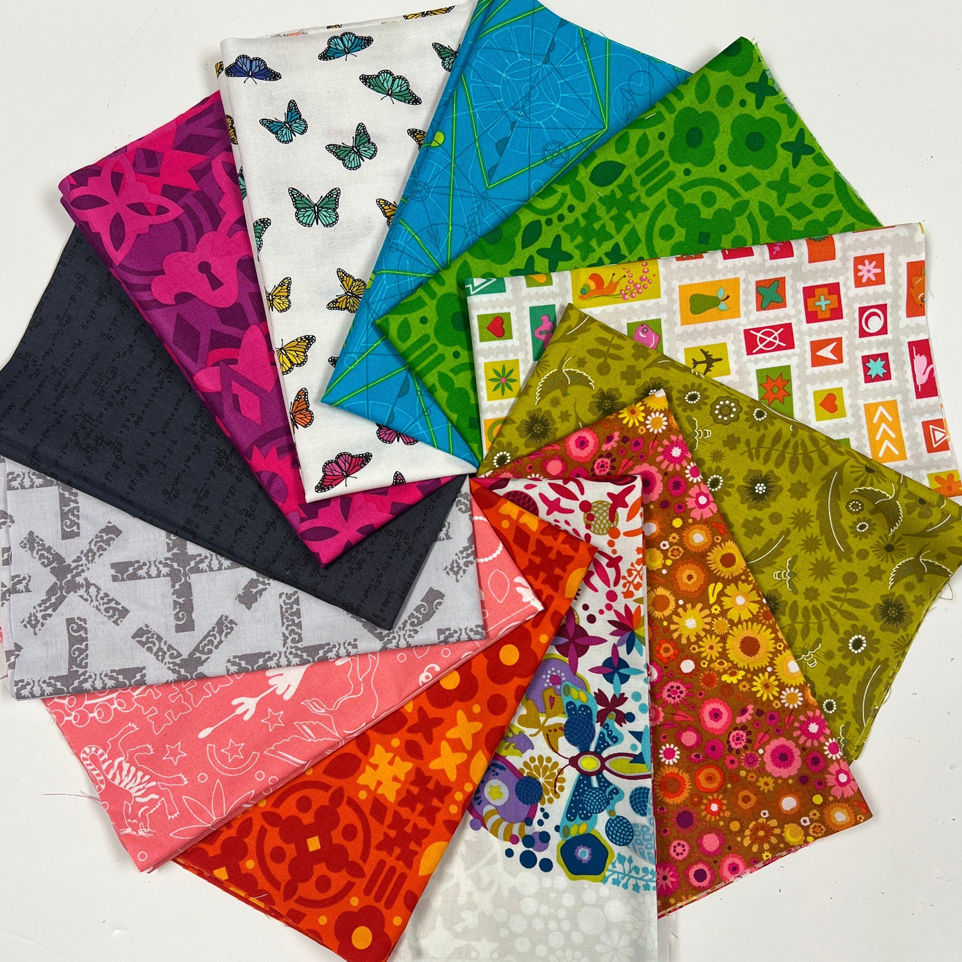 This is the kind of bundle that works whether you’re going full Alison Glass maximalism or sprinkling these in as feature moments. Perfect for modern quilts, bold piecing, fussy cutting, statement bindings, or anywhere you want color to do some heavy lifting.