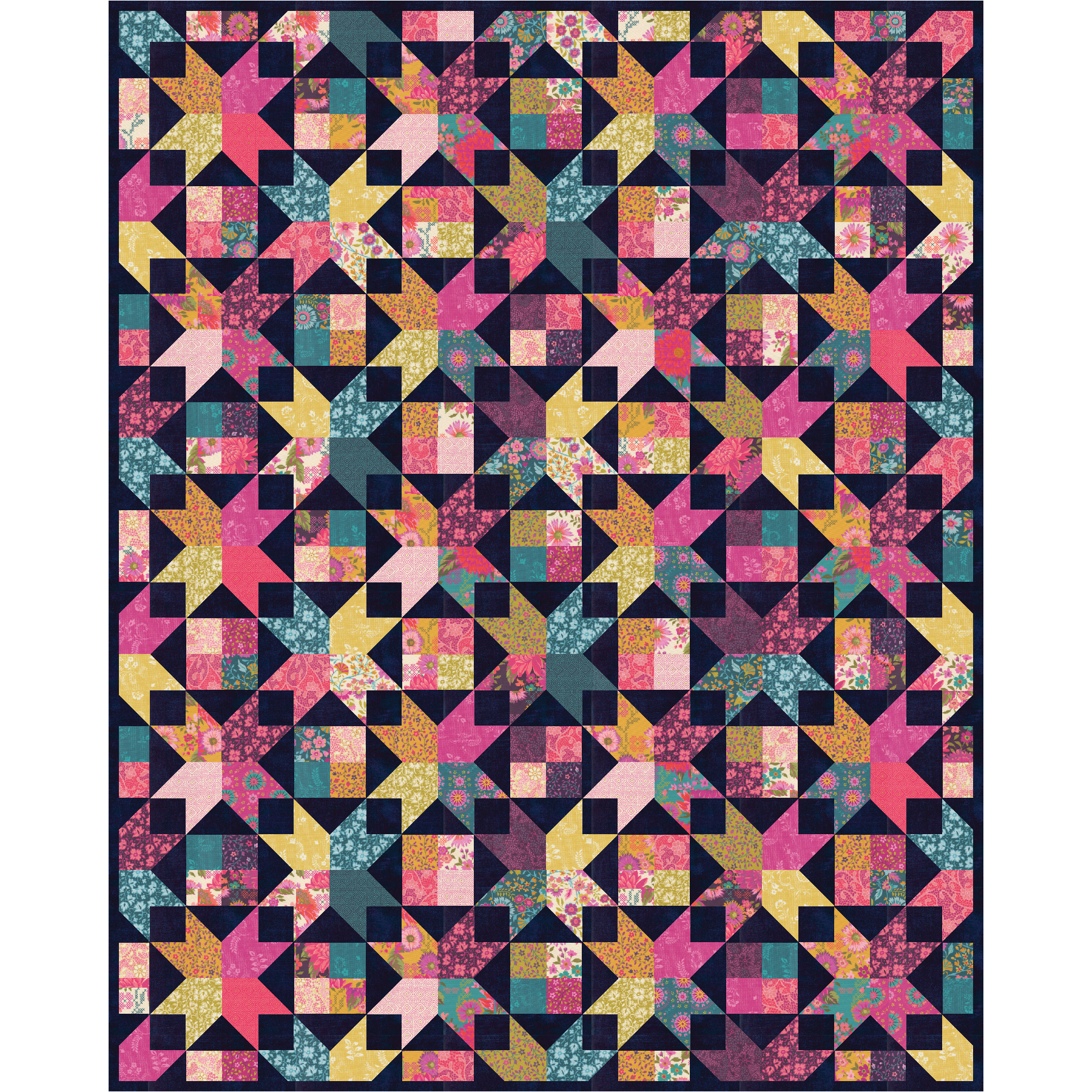 Bright, boho, and full of star power—the Amelia Quilt pattern shines even brighter when paired with Crystal Manning’s Parlor collection for Moda Fabrics. Bold blooms, mandalas, and vintage-inspired prints come together in a stunning patchwork of color that feels both modern and timeless.