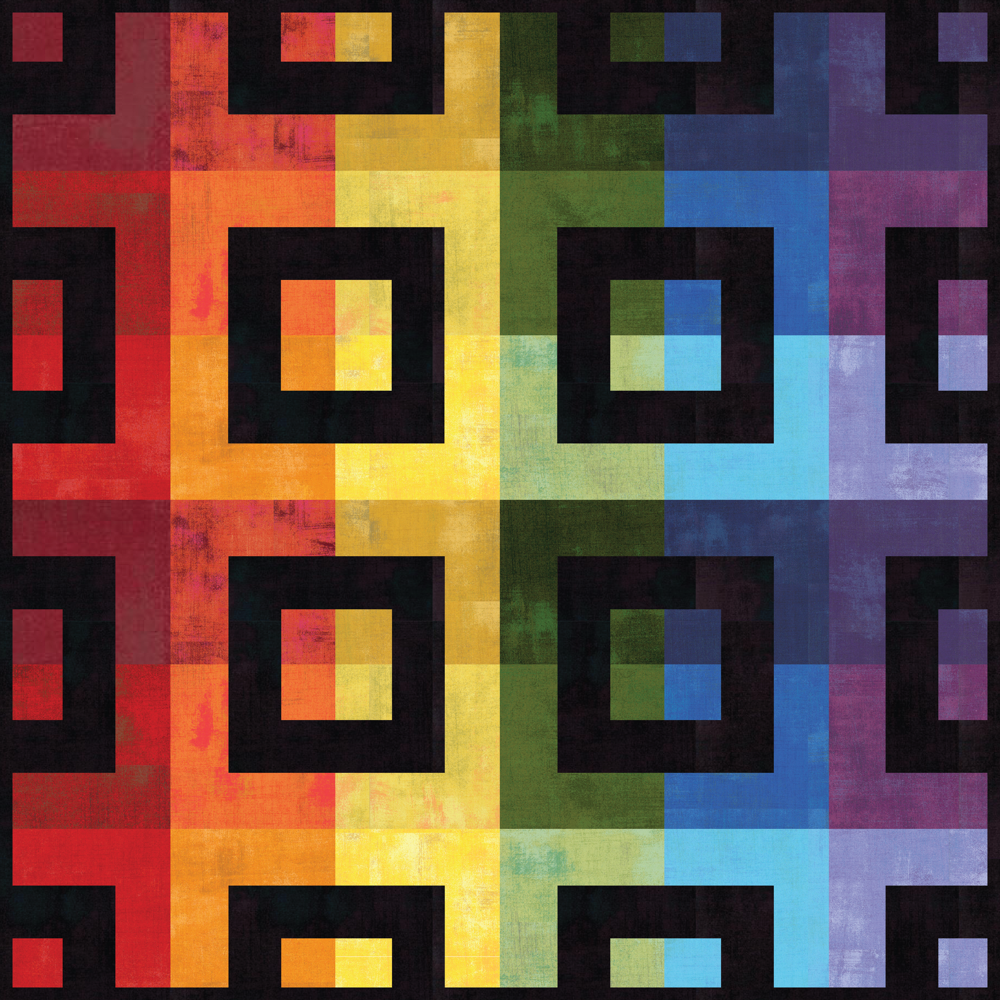 This special edition uses Grunge by BasicGrey for Moda Fabrics in a radiant Pride-inspired palette—from red to violet. With the option of a black or white Grunge background, each color transition is amplified for extra visual impact and expressive depth.