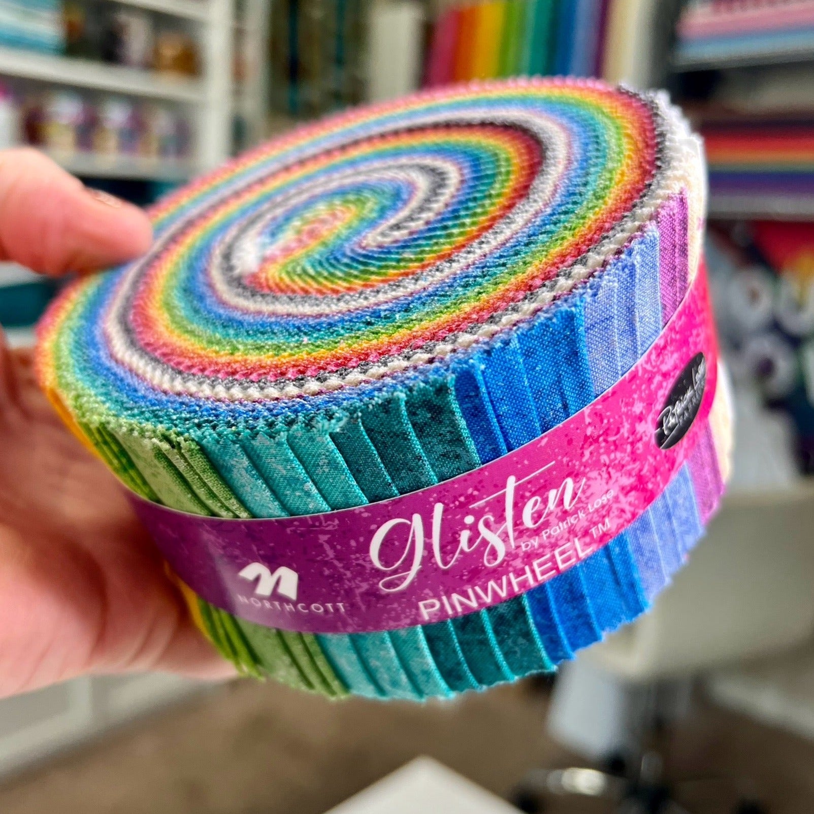 This 2-1/2 inch strip bundle (jelly roll) includes 40 strips that are 2-1/2″ x width of fabric from the Glisten collection from Patrick Lose from Northcott Fabrics. 100% cotton