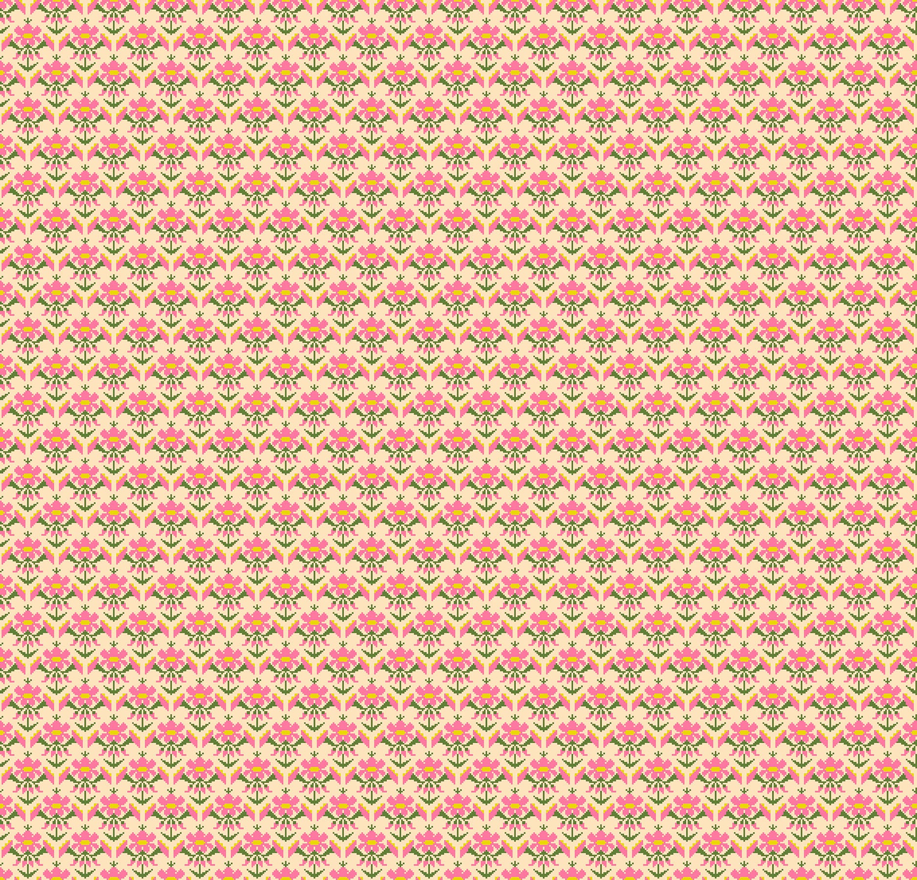 Heiress is a collection of basics by designer Anna Maria Parry, drawing inspiration from her grandmother's embroidery and needlework traditions. The fabrics feature floral and animal motifs rendered in small pixels that echo cross-stitch patterns while maintaining a contemporary digital sensibility. This thoughtful blend of classic needlework aesthetics with modern design brings timeless charm to your creations. Warm, inviting tones throughout the collection enhance its cozy appeal, making each piece feel handcrafted and personal.
