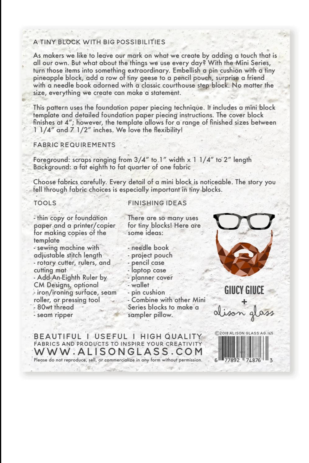 As makers, we like to leave our mark on what we create by adding a touch that’s all our own. But what about the things we use every day? With the Mini Series, you can turn ordinary items into something extraordinary. Embellish a pin cushion with a tiny pineapple block, add a row of tiny flying geese to a pencil pouch, or surprise a friend with a needle book adorned with a classic courthouse steps block. No matter the size, everything we create can make a statement.