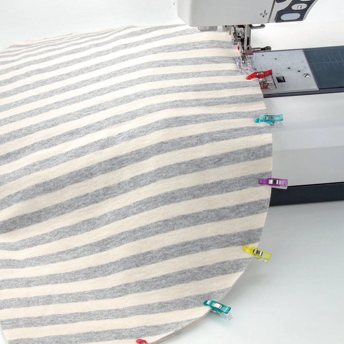 Use Mini Wonder Clips for precision clipping! The small size works well with miniature patchwork, doll clothes, and all work that requires holding pieces together in tight sections. Clips are 1 1/16in long and 3/16in wide with a 1/8in nose.