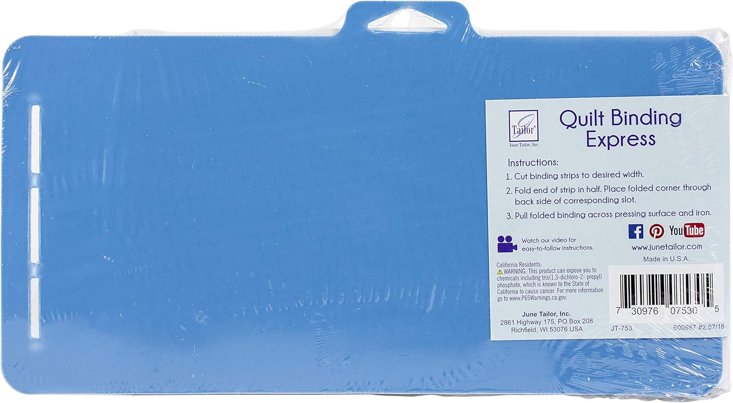 June Tailor Quilt Binding Express is perfect for pressing binding strips quickly and accurately. Fold in half and feed through appropriate slot, iron as fabric is pulled through slot using corresponding guidelines. Hard, weather-safe cutting mat provides superior durability and extended blade life. Includes slots for 2in, 2 1/4in and 2 1/2in widths.