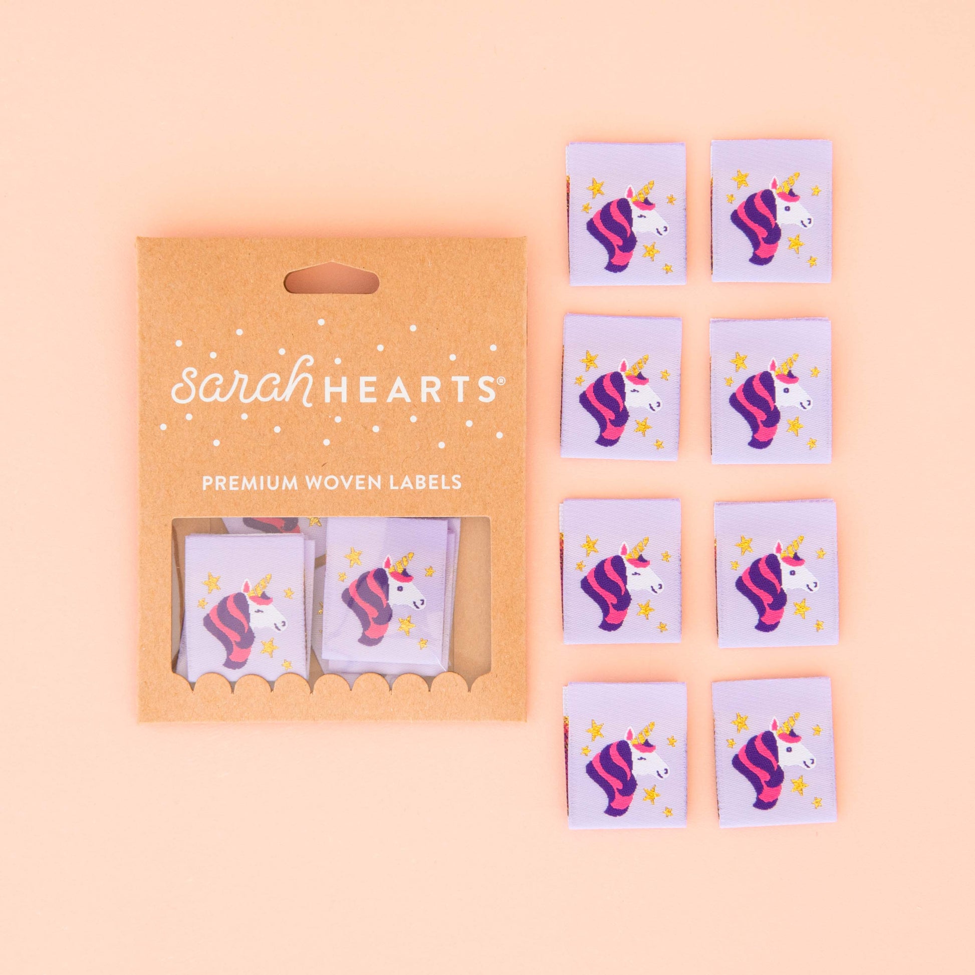 Sarah Hearts Unicorn Woven Labels for Sewing & Quilting Projects