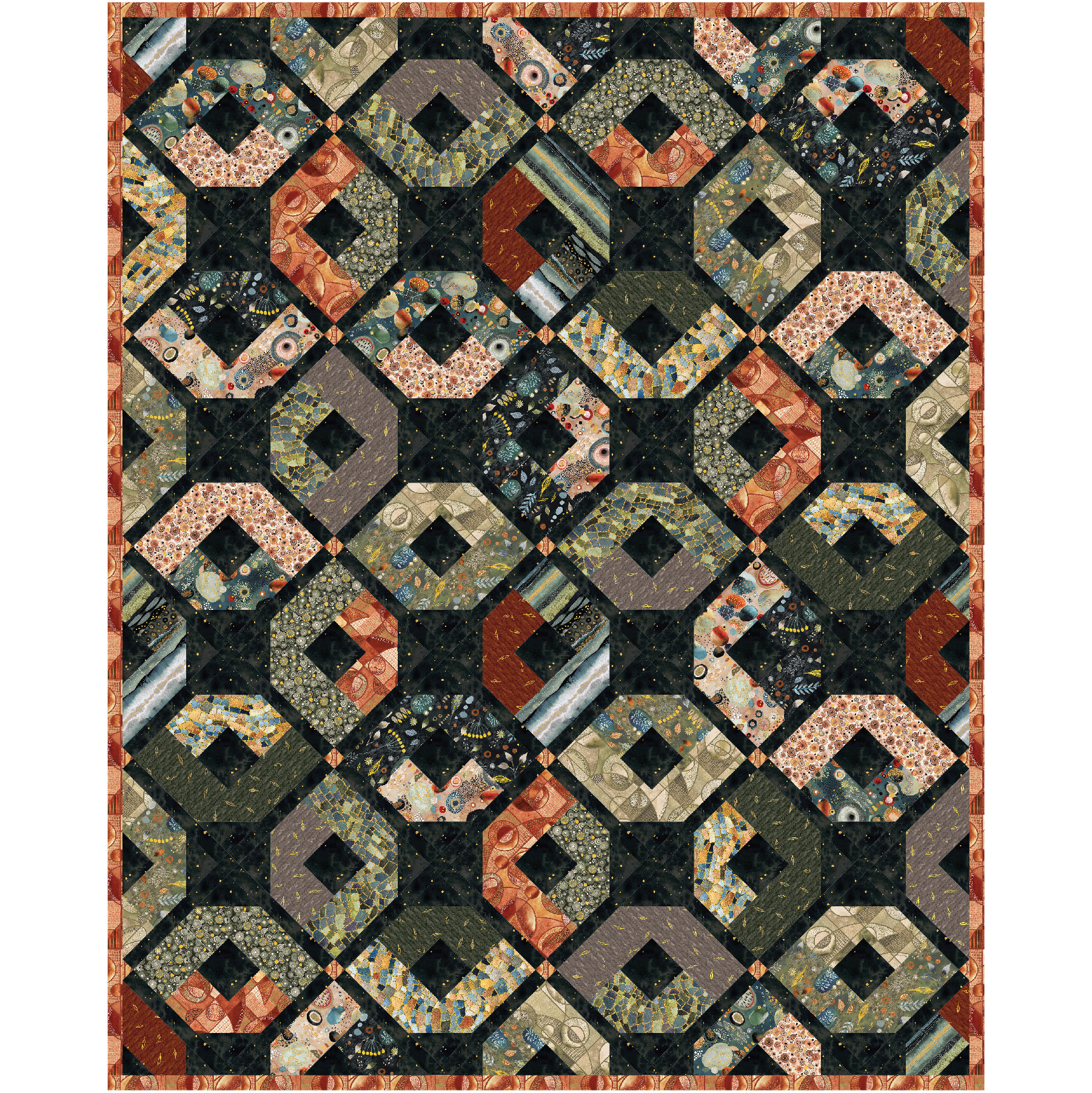 If you want a quilt that really leans into Flora & Form’s moody botanicals, grounded textures, and quiet drama, the Elena quilt is an absolute showstopper. This pattern by Kitchen Table Quilting takes the entire palette - those deep greens, smoky neutrals, rusty terracottas, inky blues—and turns them into a design that feels both organic and architectural at the same time.