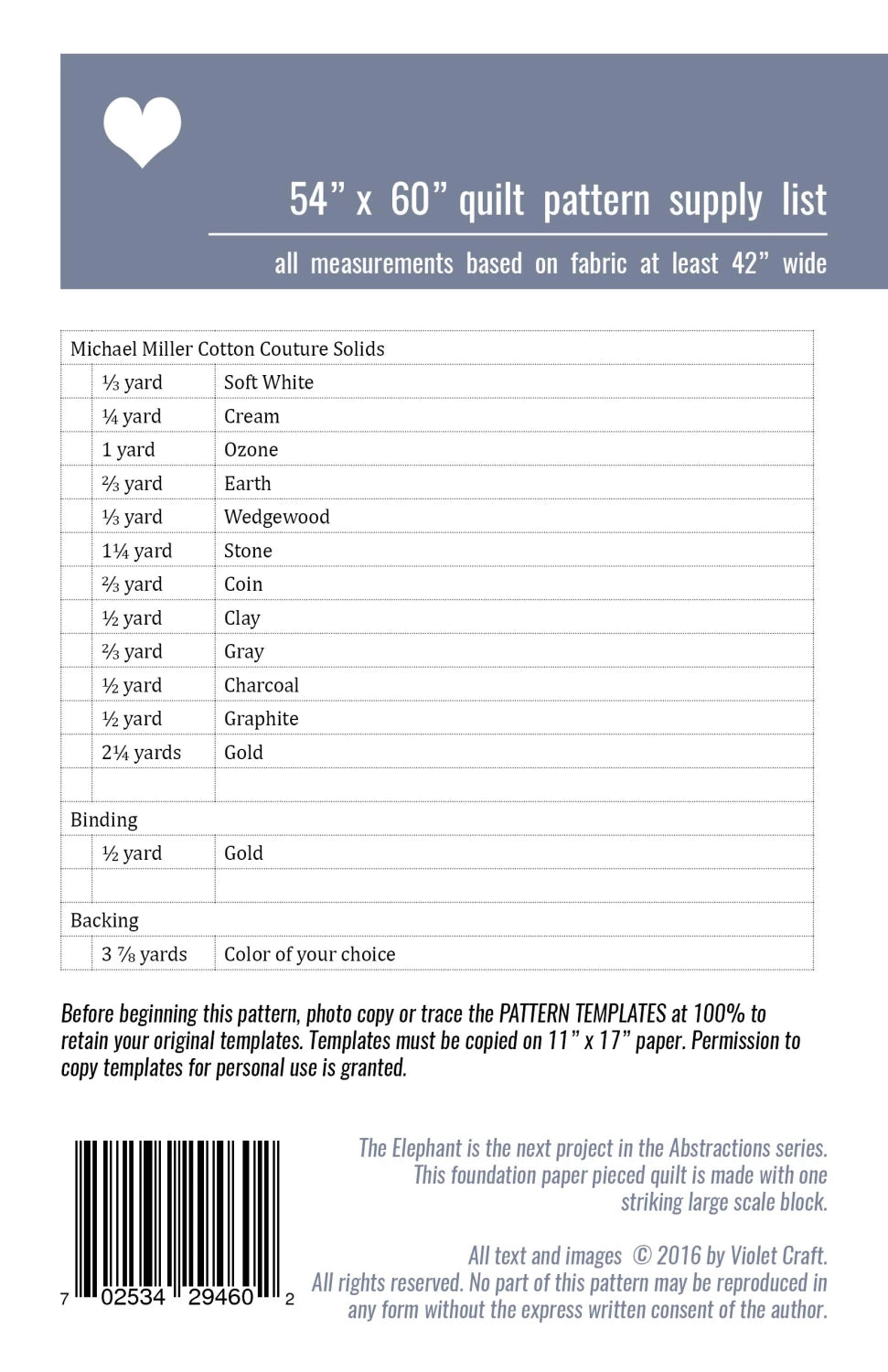 Elephant Abstractions Quilt Pattern - by Violet Craft