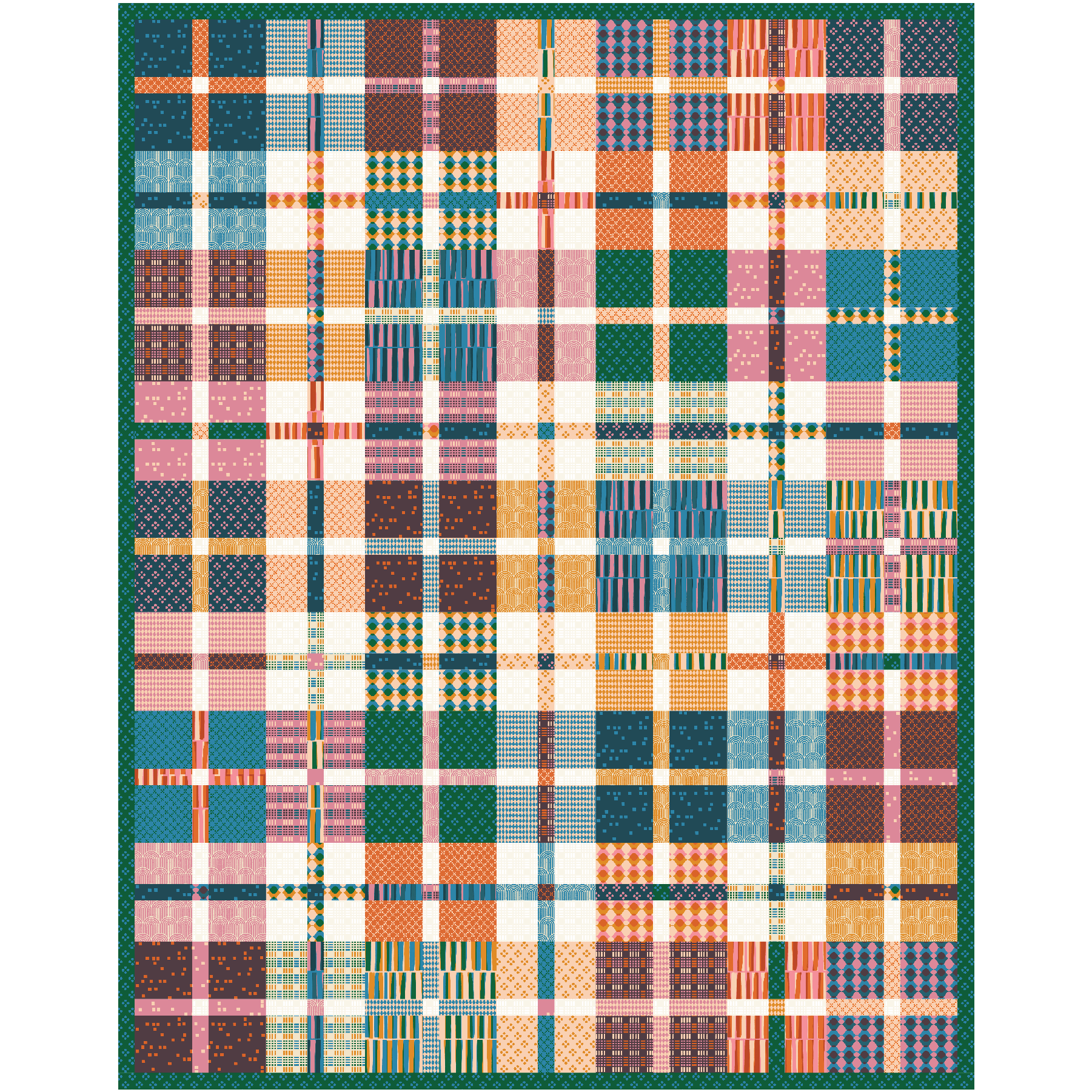 This kit stitches together that “just-right” balance of scrappy charm and intentional design. Using 20 different fat quarters from Geometry, plus coordinating background, binding, and backing, you’ll create a plaid quilt that feels fresh, playful, and totally timeless.