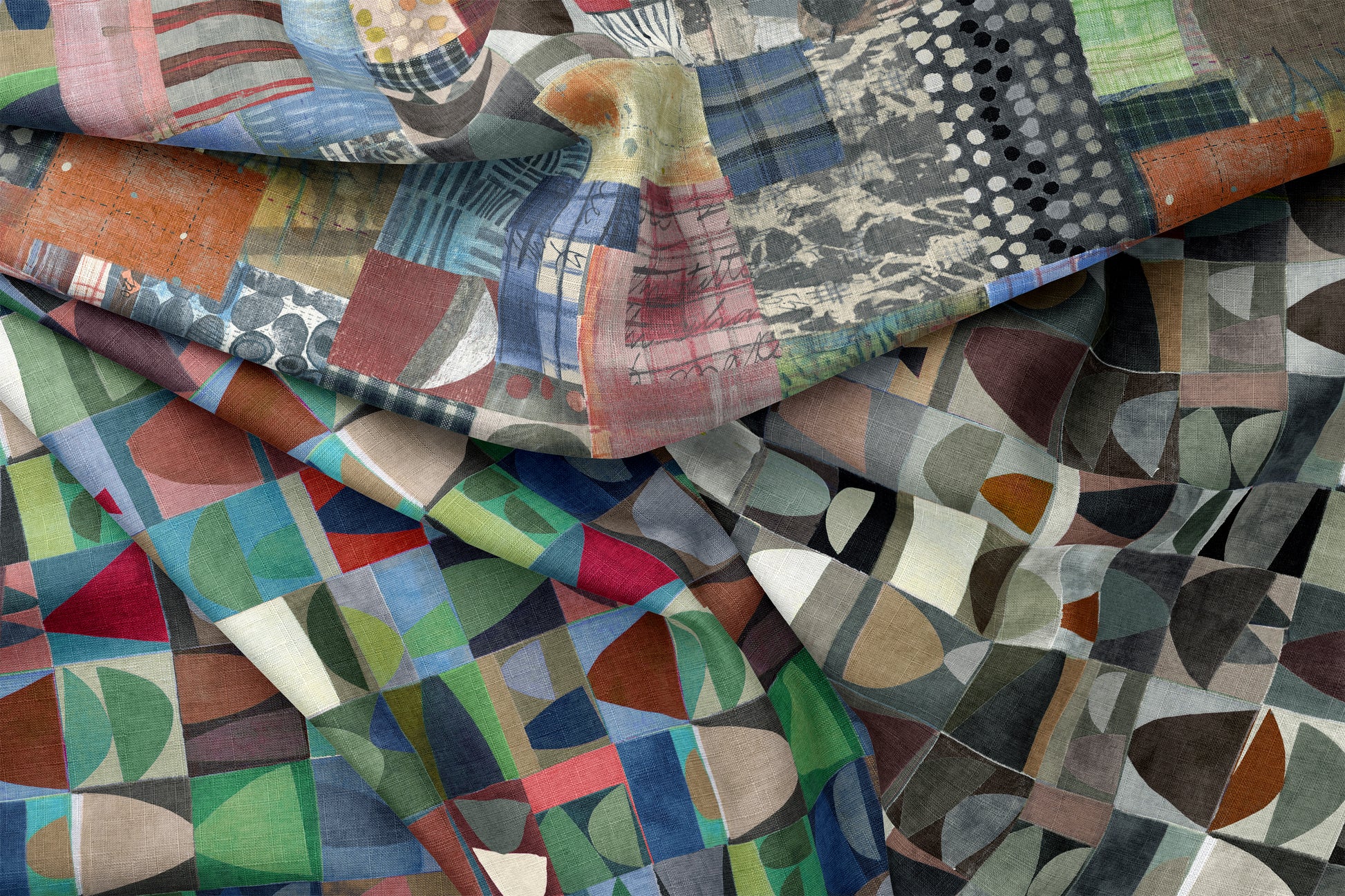 This collection feels like flipping through Marcia Derse’s personal sketchbook—each print a snapshot of her creative process. Hand-drawn lines, layered textures, and a palette that dances between earthy neutrals and vibrant hues come together on high-density cotton, offering both visual depth and tactile richness.