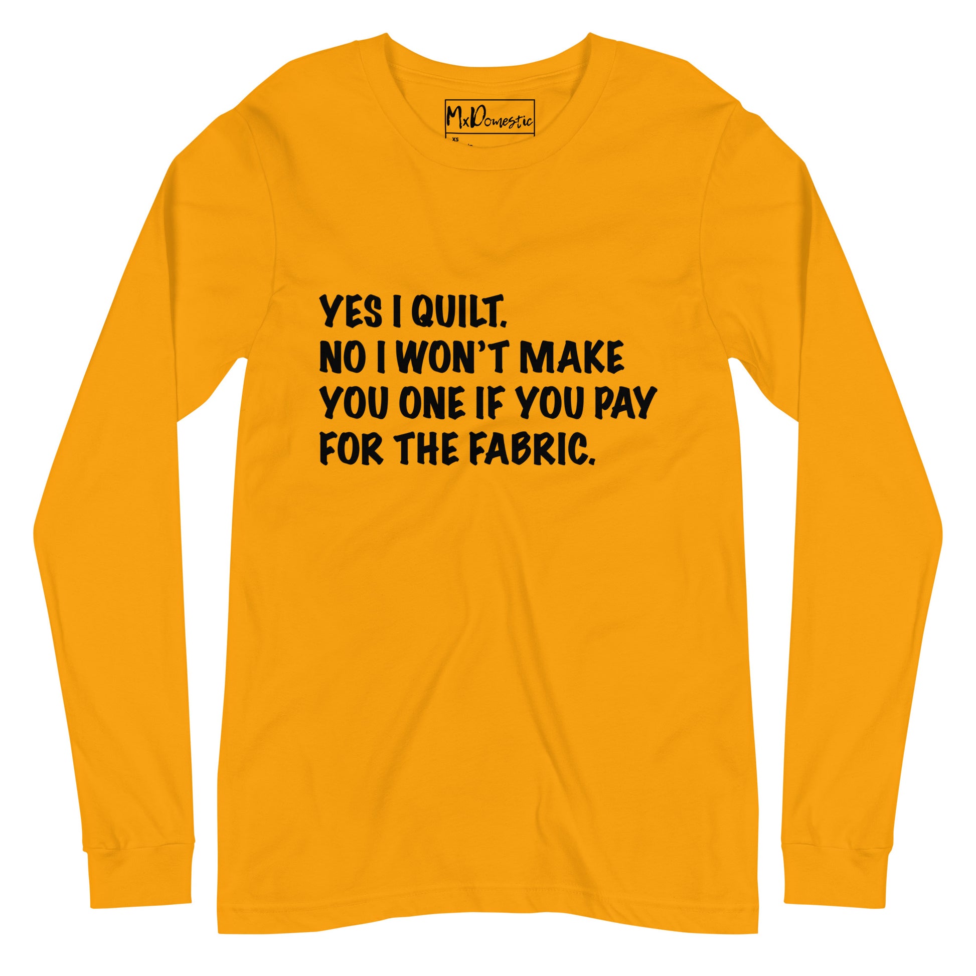 Yes I Quilt. No I Won't Make You One if You Pay for the Fabric. Unisex Long Sleeve Tee